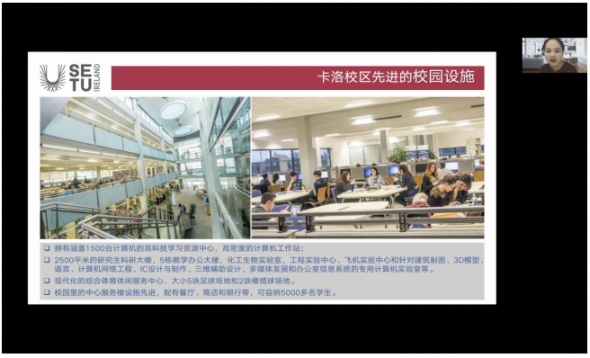 项目宣讲活动中,主讲老师首先从地理方位、人文历史、文化对比、社会经济的角度介绍爱尔兰国家的基本情况,随后,针对爱尔兰东南理工大学的专业设置、课程开设、合作办学要求以及项目的优势等问题进行详细的讲解。鼓励有去爱尔兰东南理工大学留学意向的同学认真学习当前学校课程,努力达到爱尔兰东南理工大学学术成绩要求并及时提交申请材料,按照规划时间提早准备。