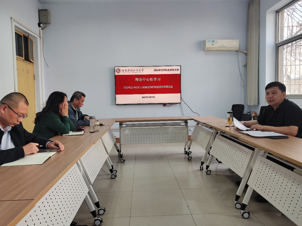 4月7日,学院直属党支部书记鲁守璞主持召开党支部理论学习中心组集体学习会议,专题学习习近平总书记关于加强党的建设的重要论述。学院直属党支部理论学习中心组成员参加。