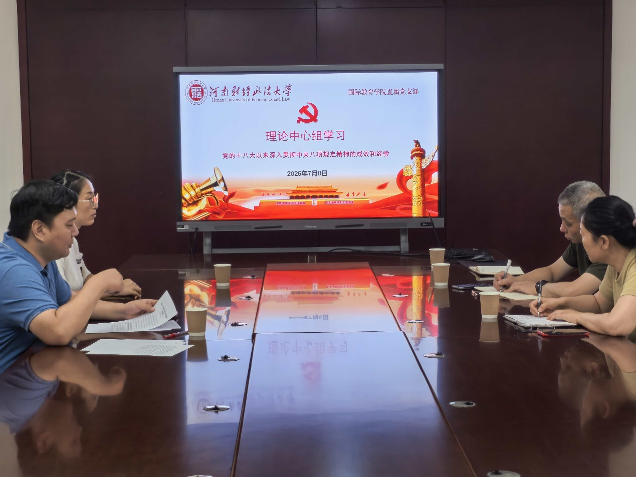 7月8日,学院直属党支部书记鲁守璞主持召开党支部理论学习中心组(扩大)集体学习会议,专题学习深入贯彻中央八项规定精神的成效与经验。学院党政班子成员及科级以上干部参会学习。