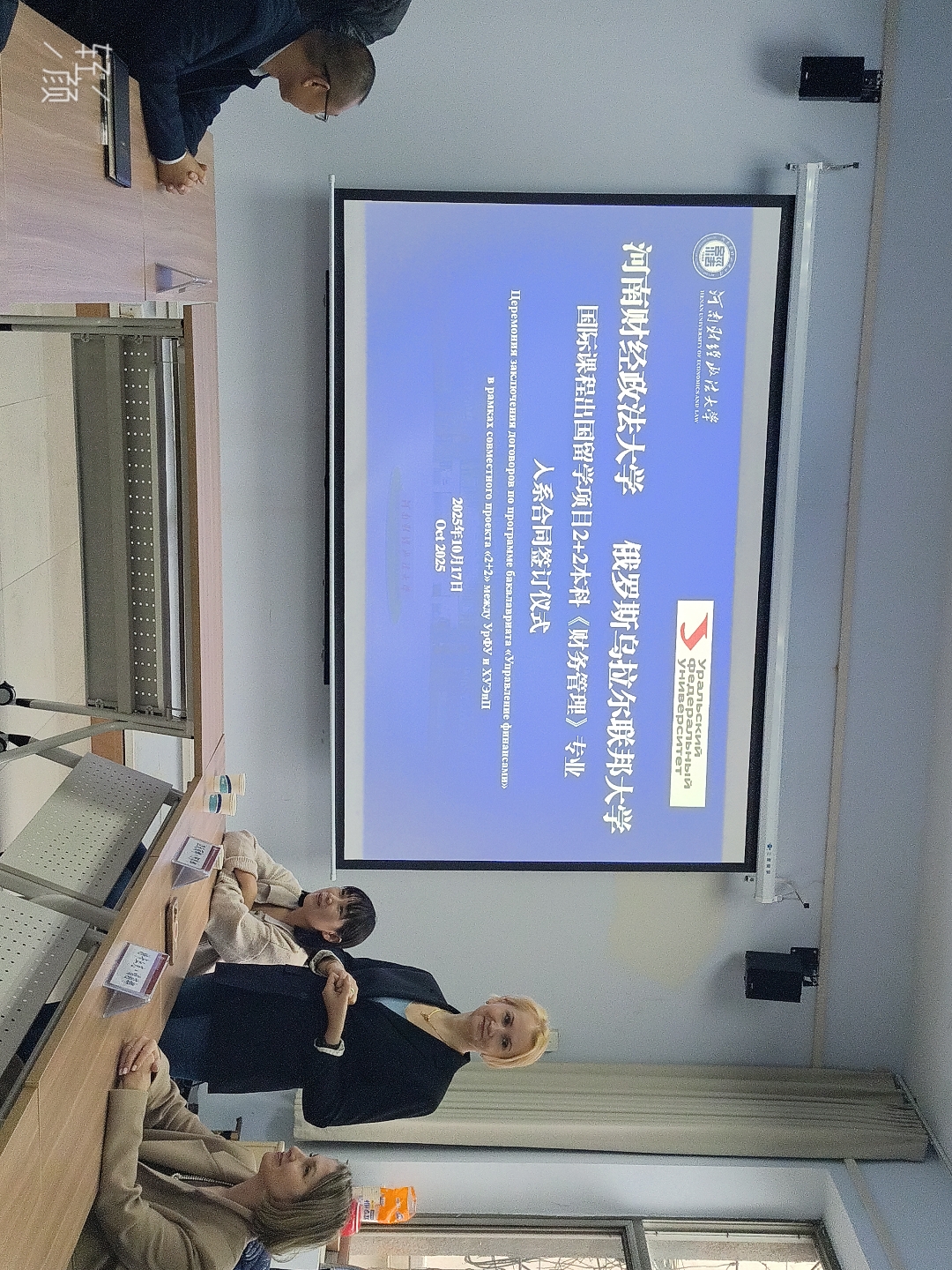 10月17日上午,我校与俄罗斯乌拉尔联邦大学学术发展部部长涅沃丽娜·阿廖娜一行在郑东校区行政楼四楼会议室举行合作洽谈会议。俄罗斯乌拉尔联邦大学学术发展部副部长、中俄学院院长特卡丘克·噶莉娜参加会议。我院直属党支部书记鲁守璞、院长张洋出席会议。会议由我院副院长法玉琦主持。