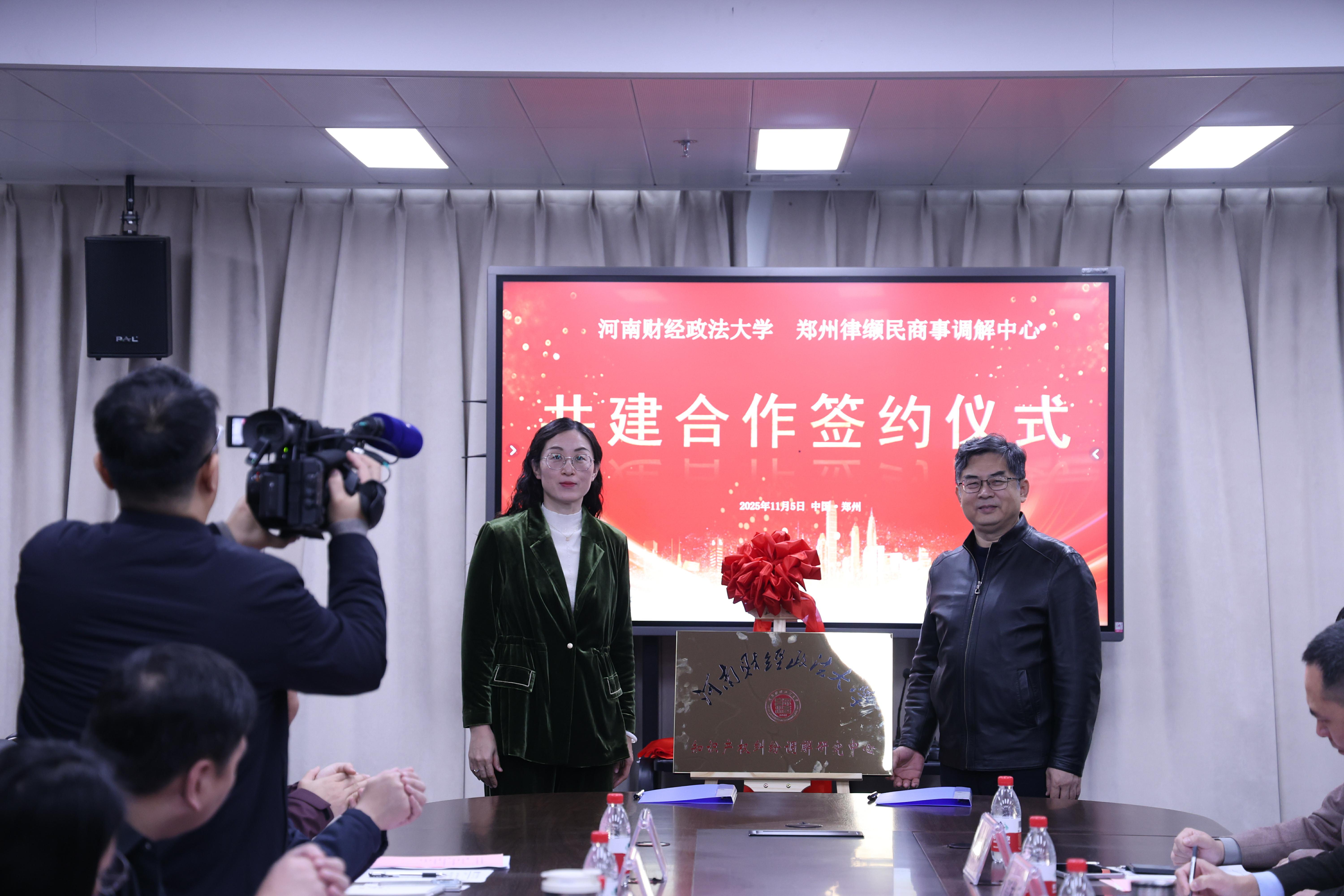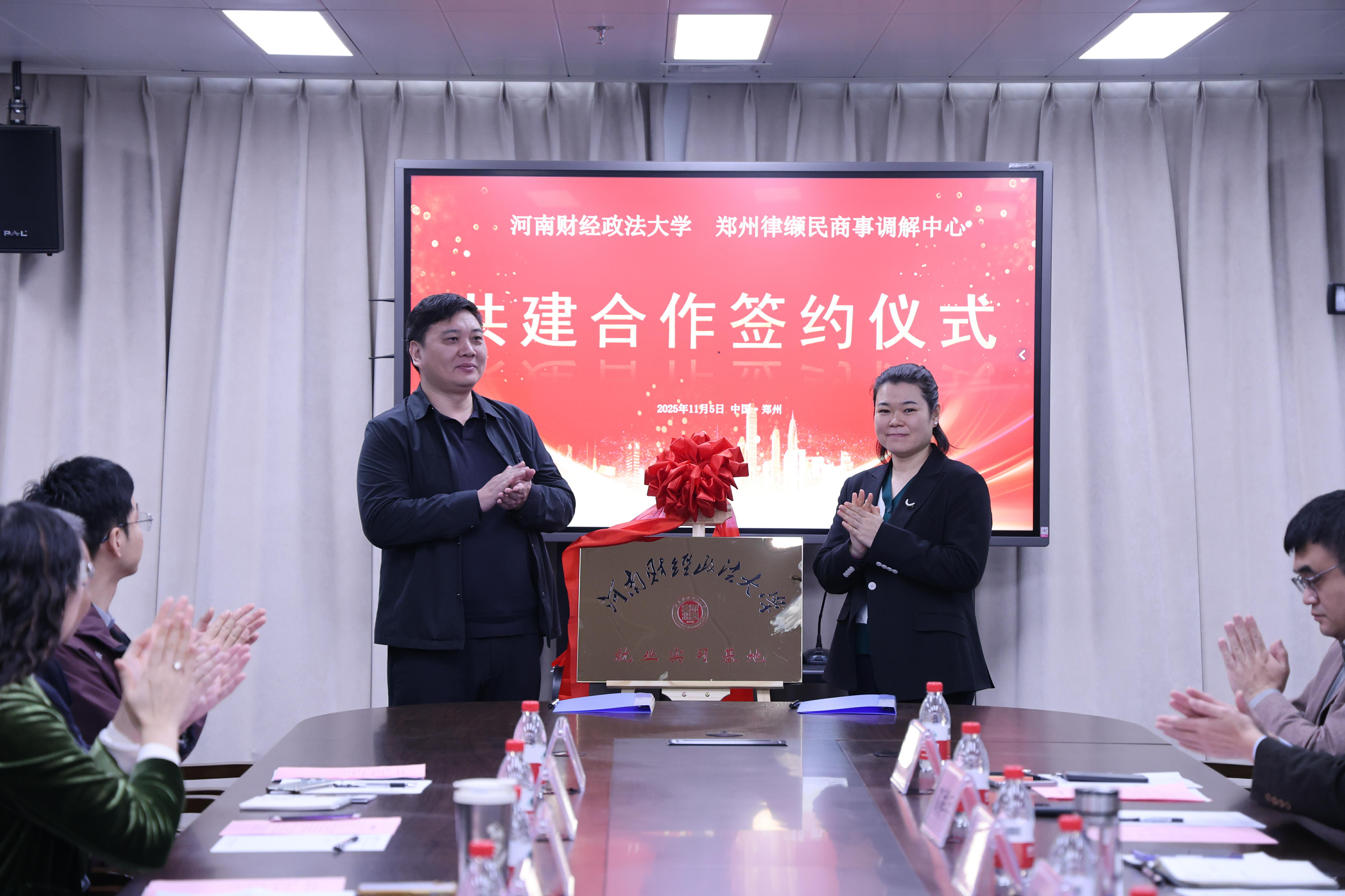 会上,双方围绕法律教育与法律服务的创新融合进行了座谈交流,达成了合作意向,并进行了共建合作签约仪式以及“就业实习基地”、“知识产权纠纷调解中心”的授牌仪式。
