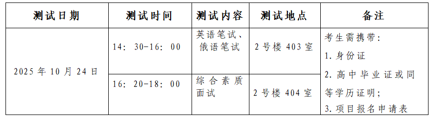 按照《英国365上市公司国际课程出国留学项目2025年招生测试工作办法》文件规定,根据项目招生情况,英国365上市公司国际课程出国留学项目2025年10月招生测试工作安排如下: